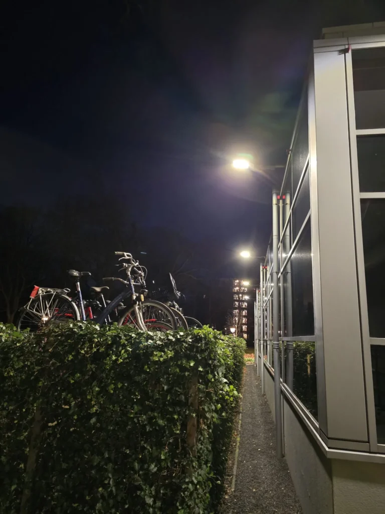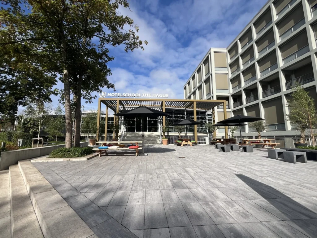 Voorheen ontbrak verlichting volledig, waardoor nooduitgangen, de fietsenstalling en expeditie-ingangen in duisternis gehuld waren. De hotelschool bevindt zich in het pittoreske Belgisch Park in Scheveningen, een gebied waar subtiele maar effectieve gevelverlichting een vereiste is om de charme van de omgeving te behouden.